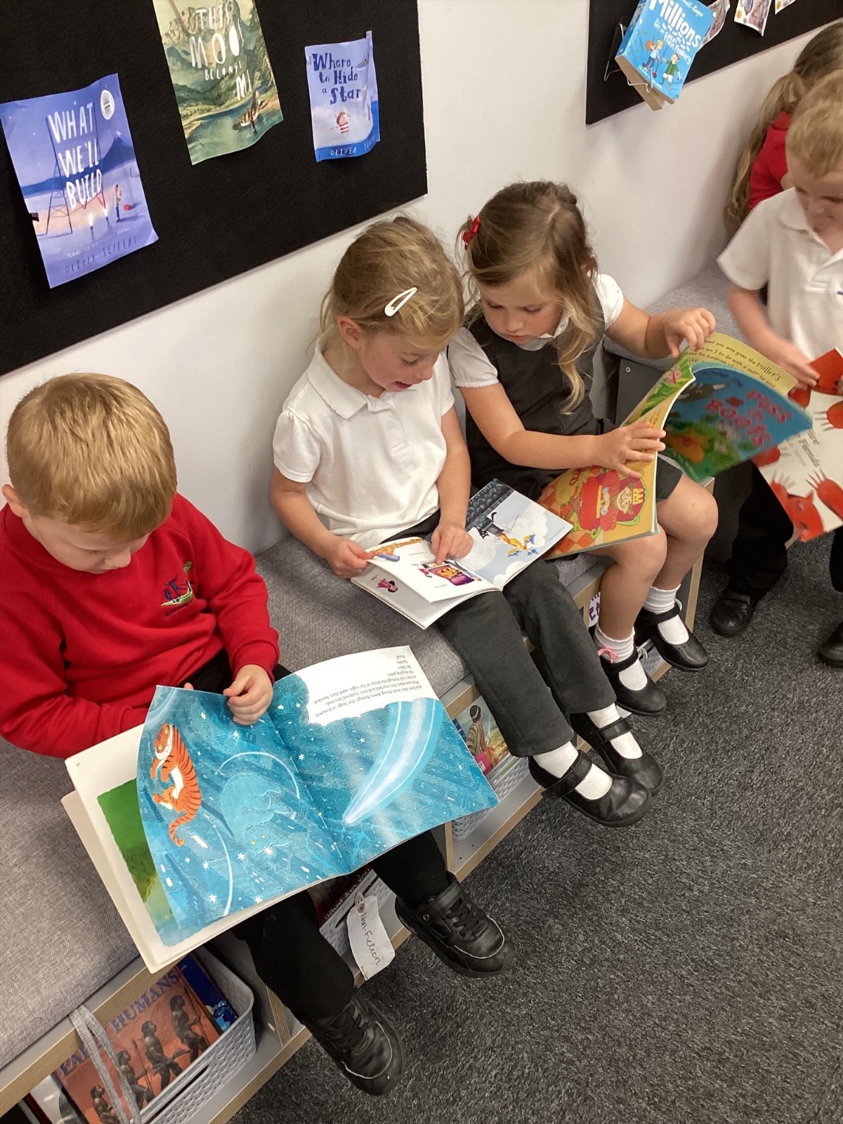 Owls class love visiting the library every Friday! They choose a book independently to take home, spend some time reading it before settling down and getting cosy for story time with the class.