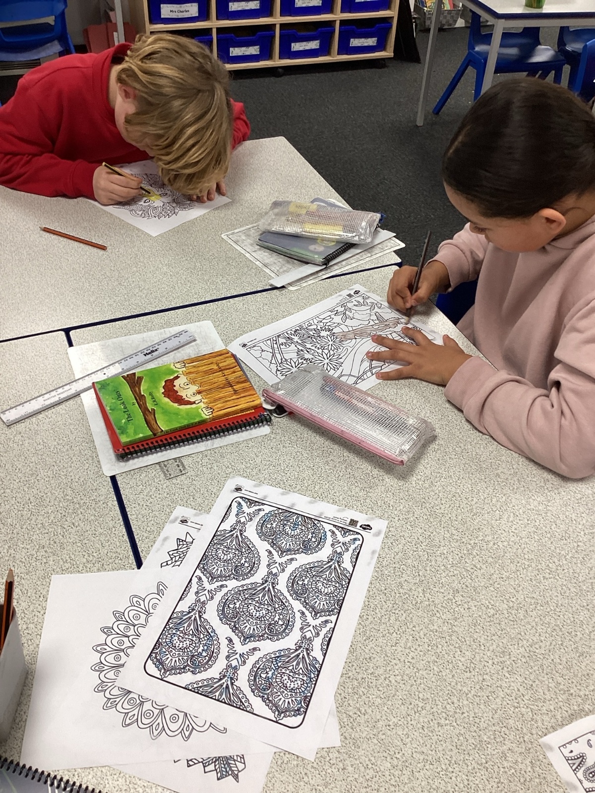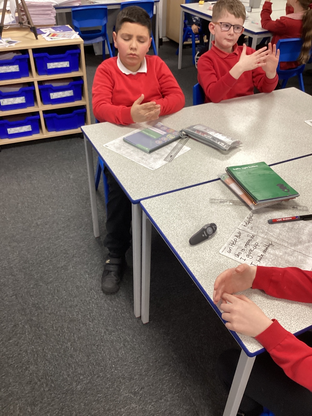 In PSHE we have been looking at strategies to help when we have strong feelings from breathing, mindfulness and recognising how parts of our bodies feel and relaxing them.