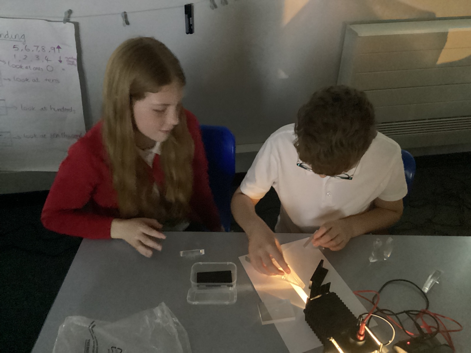 AMRC came to work with Year 6 linked to our science topic of light. They split light, bent light, looked at reflection and refraction.