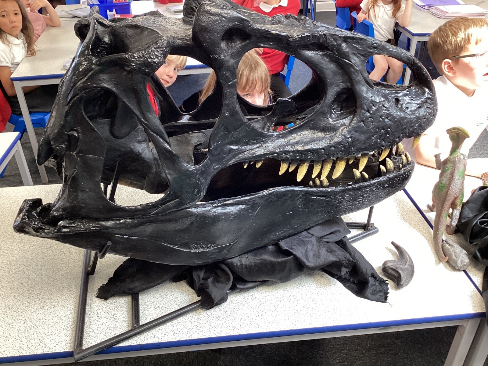 Year 2 had a surprise visitor on Tuesday, who brought lots of dinosaur artefacts for us to look at.