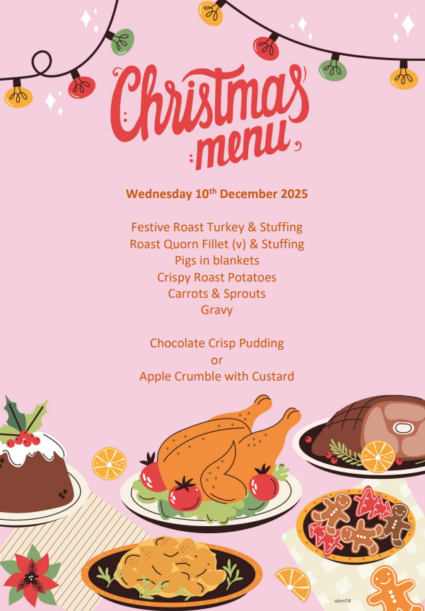 Our catering providers have announced a Christmas Dinner special menus for the next half-term.